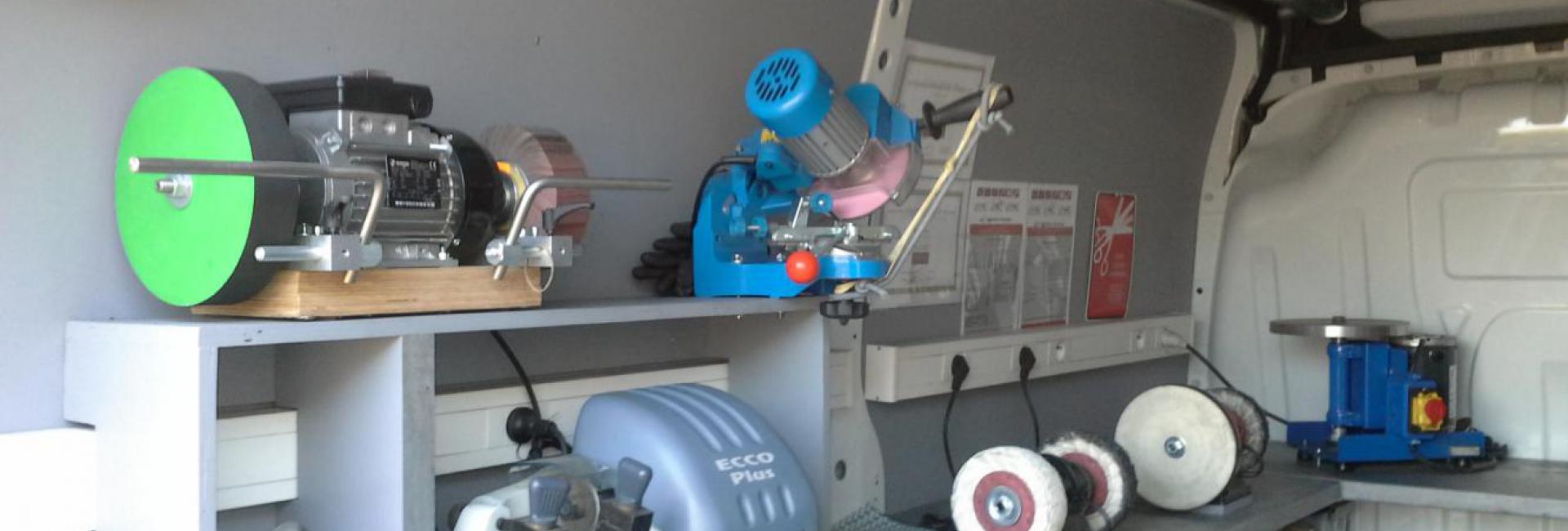 Il se charge de l’affûtage-rémoulage de tous types d'outils et d’objets coupants et tranchants :